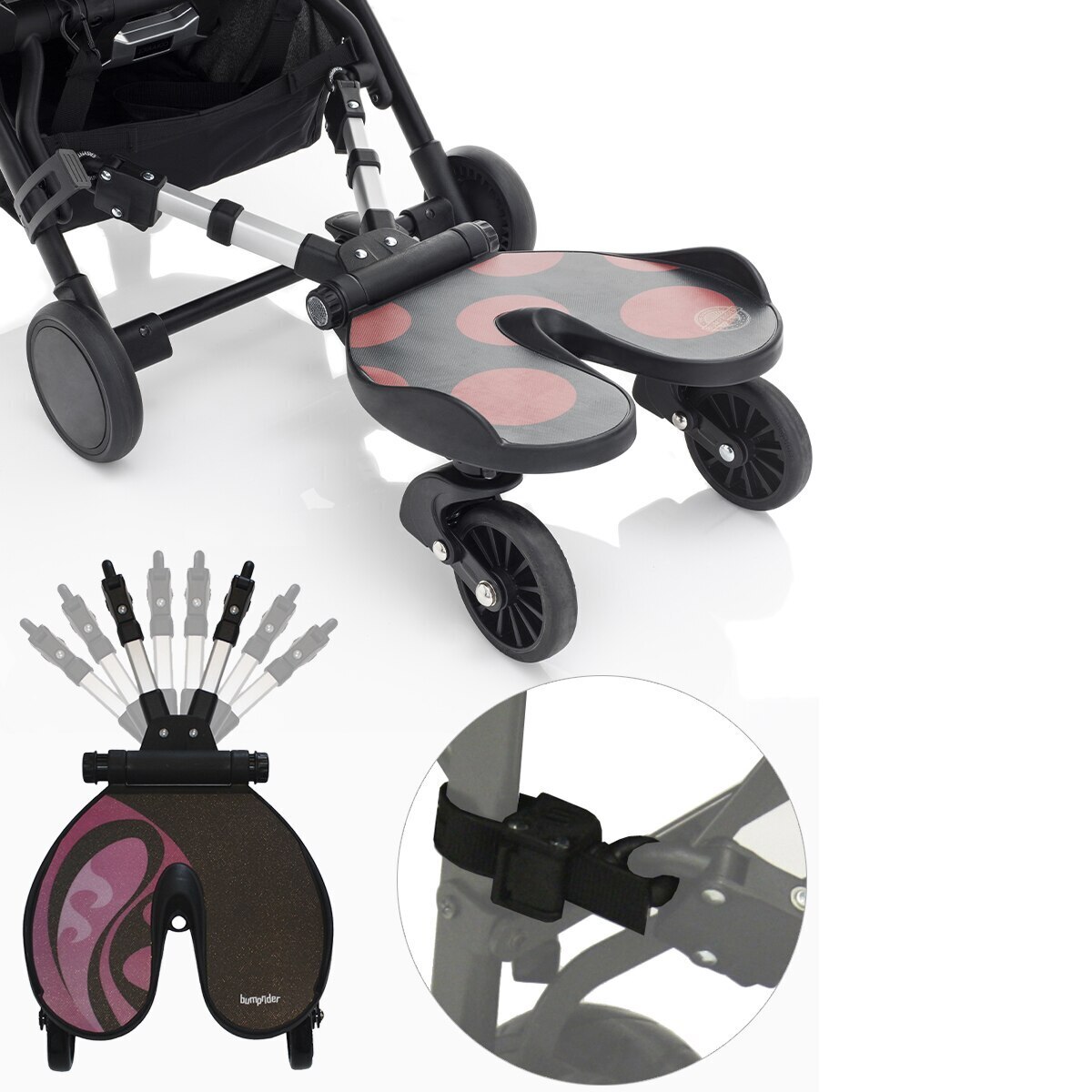 В семьях, где есть старший ребенок младшего возраста, периодически на прогулках могут возникать сложности, в связи с тем, что малыш устал и дальше идти пешком не хочет. Чтобы избежать подобных ситуаций, можно использовать подножку. Она подходит к любым коляскам, благодаря удобным универсальным креплениям. Этот полезный аксессуар можно использовать для детей в возрасте с 2 до 5 лет, весом до 20 кг.