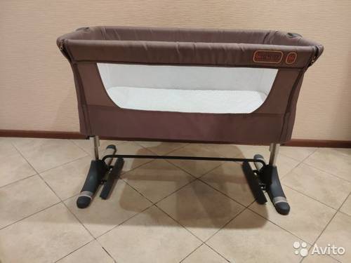 Кроватка крепится при помощи безопасной системы крепления к кровати родителей. Кроватка удобна в использовании. Она подходит для кроватей с выдвижными ящиками и может регулироваться по высоте (4 положения). Это даёт возможность малышу спать рядом с вами, но всё же в своей кроватке. Ровное дно кроватки идеально подходит для неокрепшего позвоночника ребёнка. Можно слегка наклонить основание кроватки, устанавливая 2 ножки на разную высоту, чтобы голова ребёнка была выше ножек.