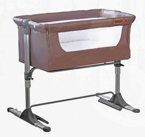Кроватка крепится при помощи безопасной системы крепления к кровати родителей. Кроватка удобна в использовании. Она подходит для кроватей с выдвижными ящиками и может регулироваться по высоте (4 положения). Это даёт возможность малышу спать рядом с вами, но всё же в своей кроватке. Ровное дно кроватки идеально подходит для неокрепшего позвоночника ребёнка. Можно слегка наклонить основание кроватки, устанавливая 2 ножки на разную высоту, чтобы голова ребёнка была выше ножек.