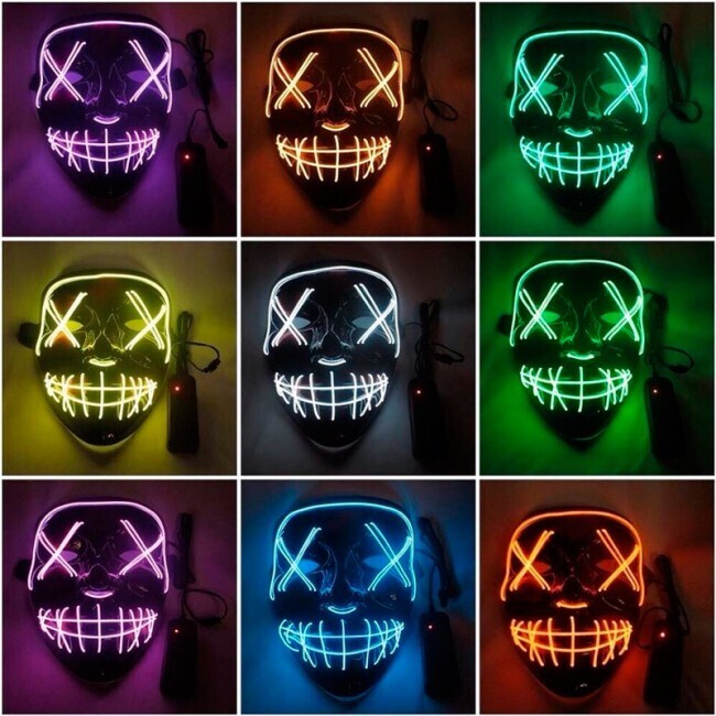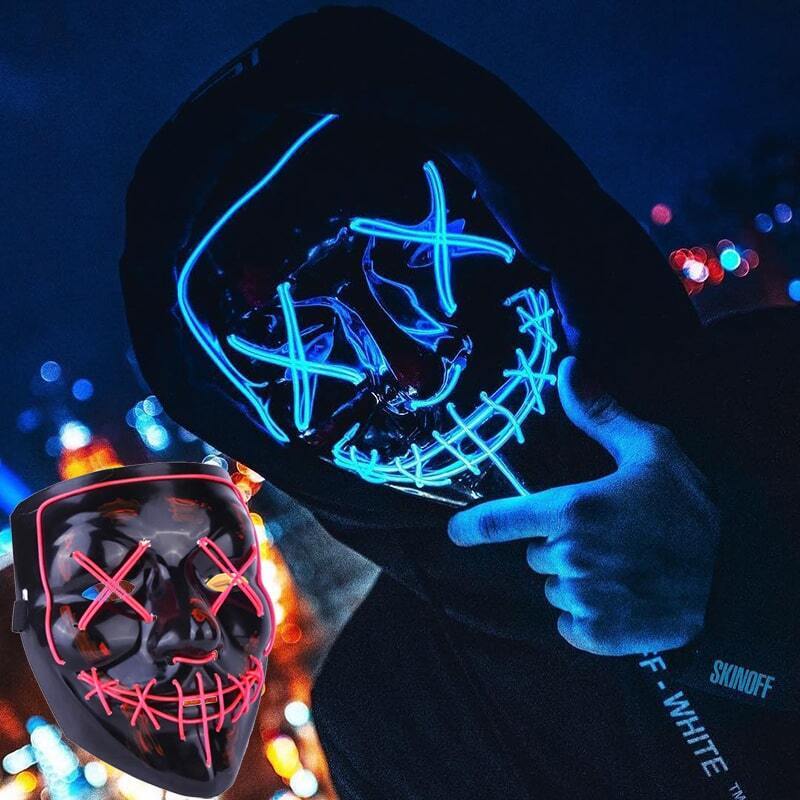 Представляем вам неоновую новинку, свет которой вы увидите в ближайшие несколько месяцев буквально везде. Это не просто блестящий способ выделиться на новогодней вечеринке, но и визуальный крик самовыражения. Яркие росчерки света складываются в абстрактные лица, сумрачные оскалы и очертания ваших любимых персонажей.С такой маской можно сделать крутые видеоролики и атмосферные фотографии, ну или просто обращать на себя внимание других людей.Материал: эко-пластик и светодиодная неоновая лента.