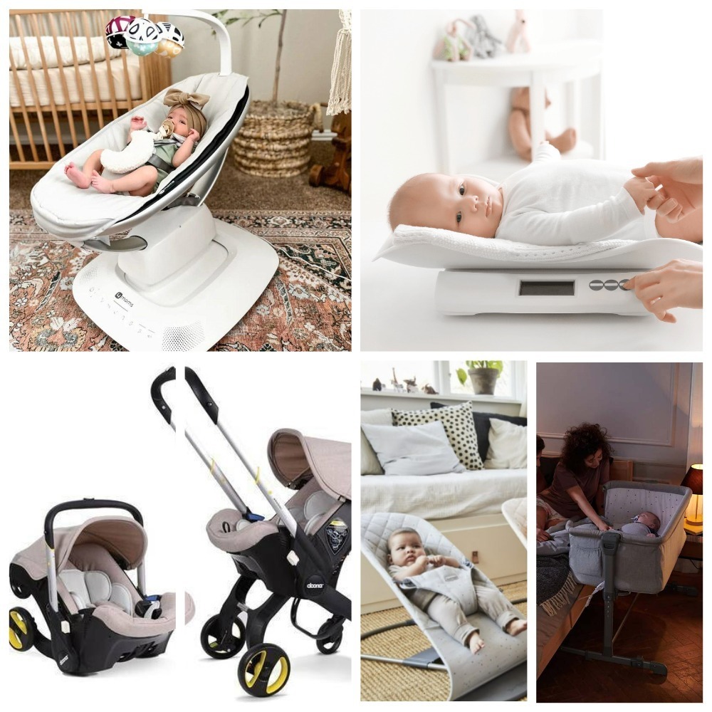 В набор входит: кроватка Chicco, весы, шезлонг BabyBjorn, mamaroo 5.0, коляска/автолюлька Doona.