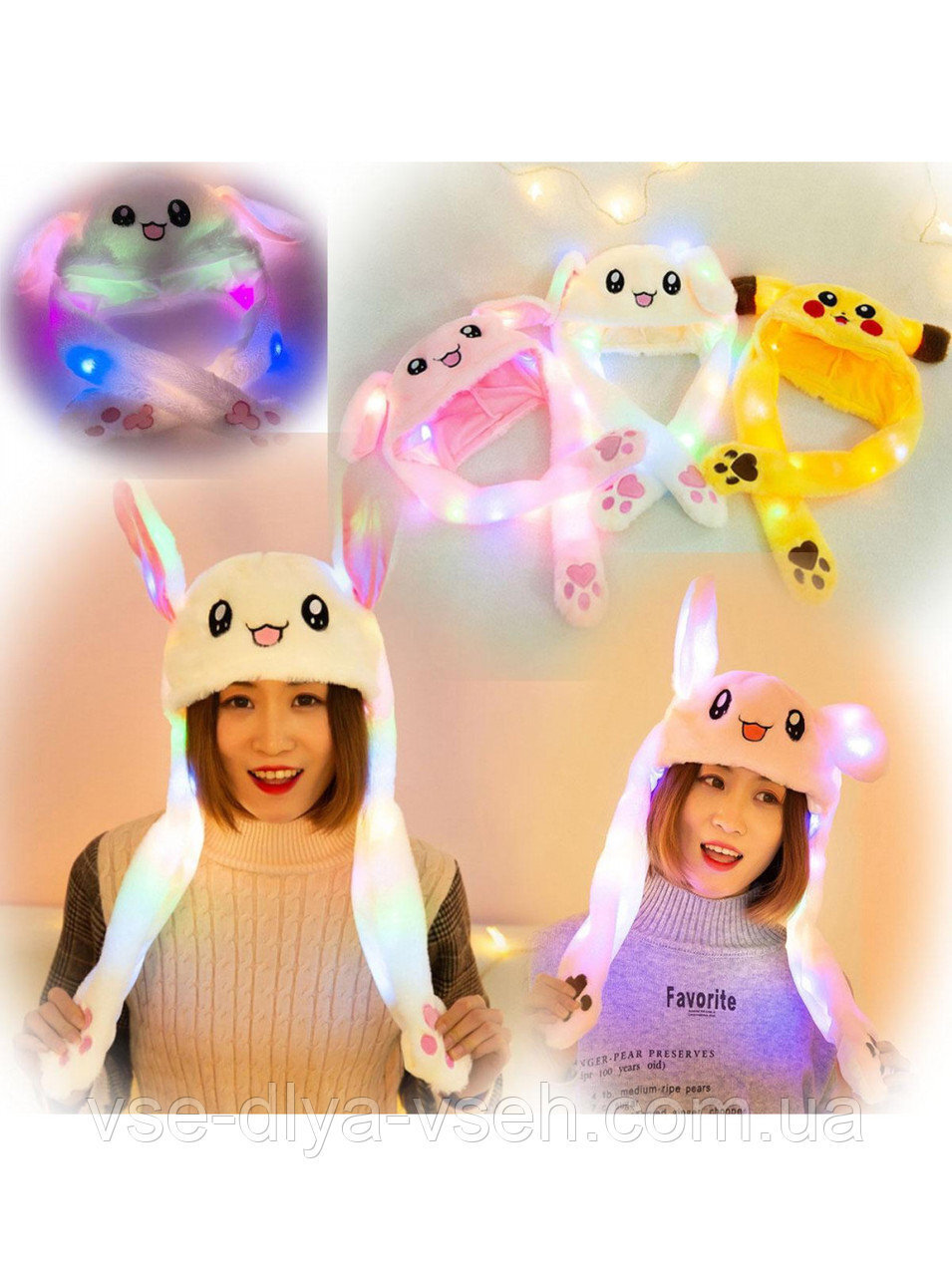 Также у шапочки с двигающимися ушами есть три режима подсветки (клапаны встроены в лапы шапки).